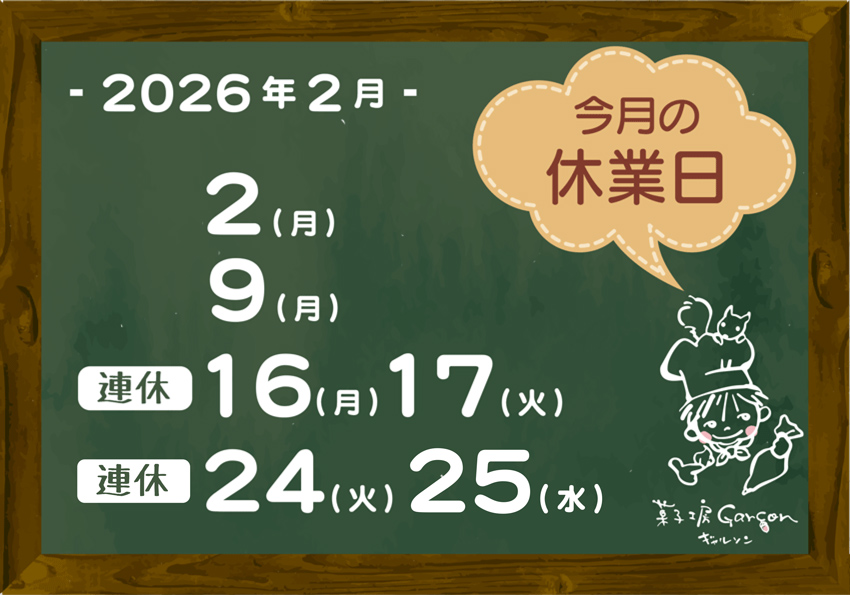 今月の休業日・2026年2月