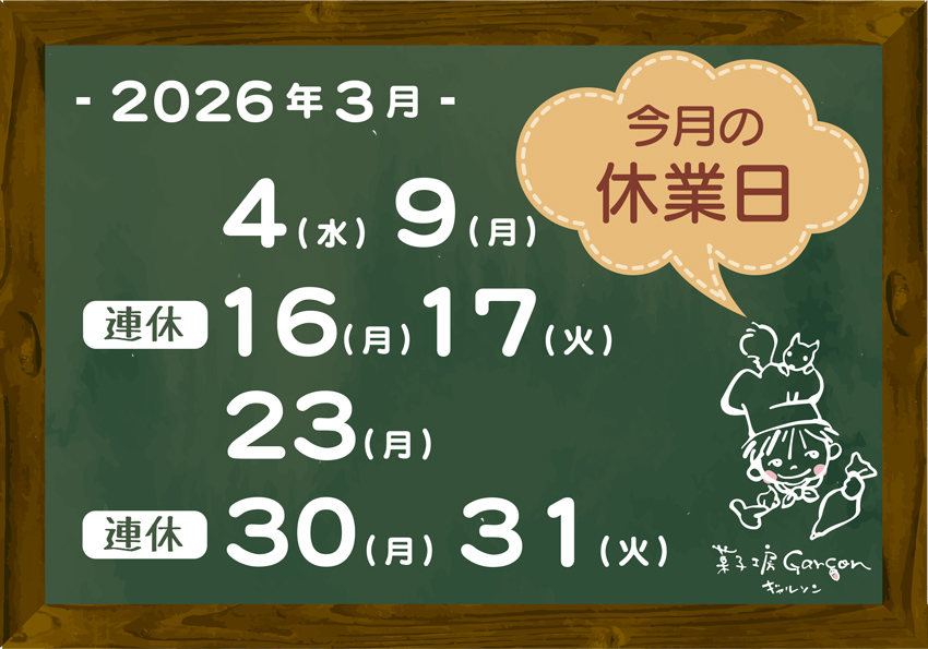 <来月のお休み予定 2026年3月>